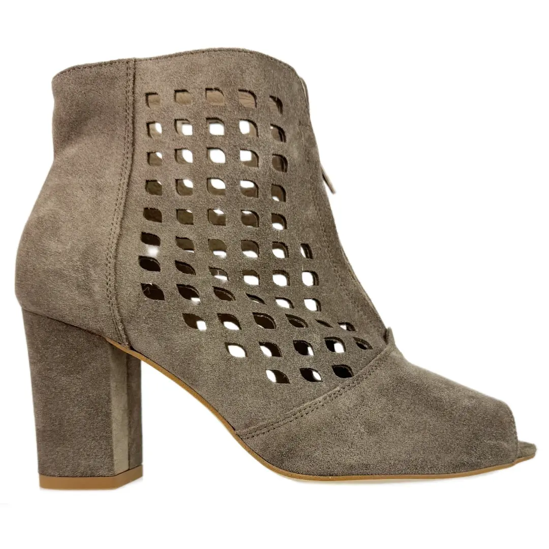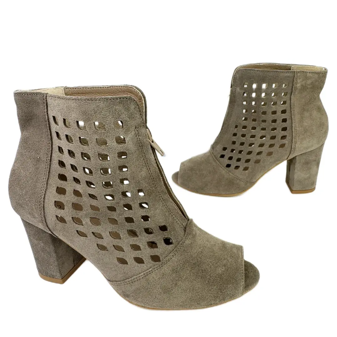 Eleganckie i stylowe botki damskie Exquisite 1554 w uniwersalnym odcieniu fango, wykonane z wysokiej jakości skóry naturalnej zamszowej. Idealne na chłodniejsze dni, zapewniają komfort i modny wygląd na co dzień oraz na specjalne okazje.