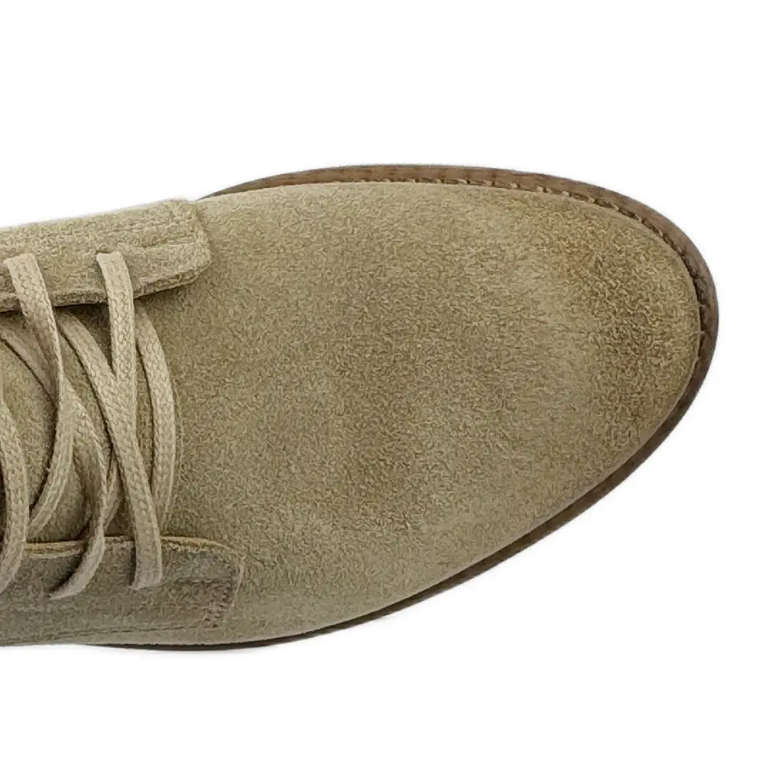 Eleganckie i stylowe botki damskie Exquisite 987 w klasycznym odcieniu beżu, wykonane z wysokiej jakości naturalnej skóry i miękkiego weluru, które zapewniają komfort oraz trwałość na co dzień.
