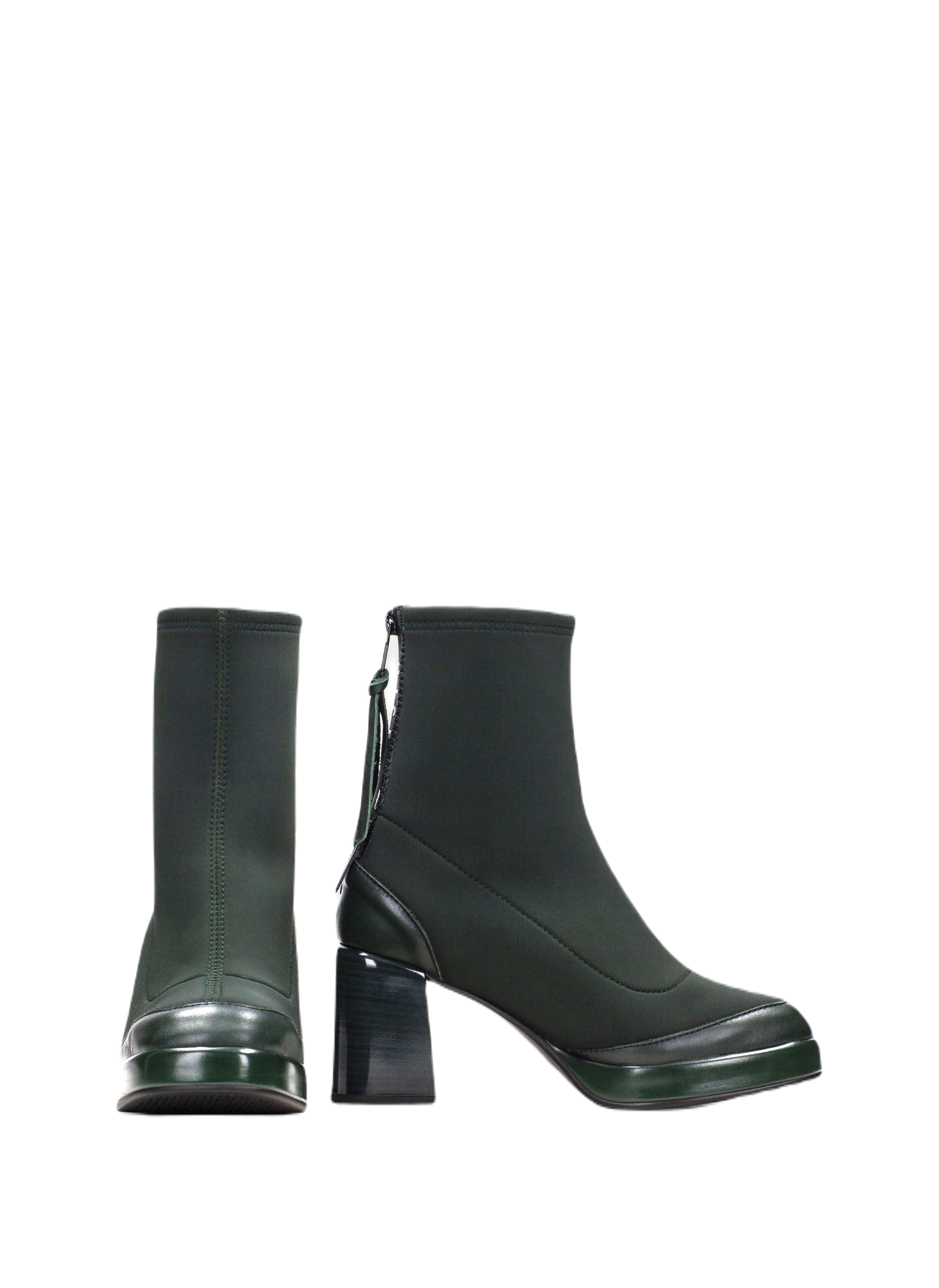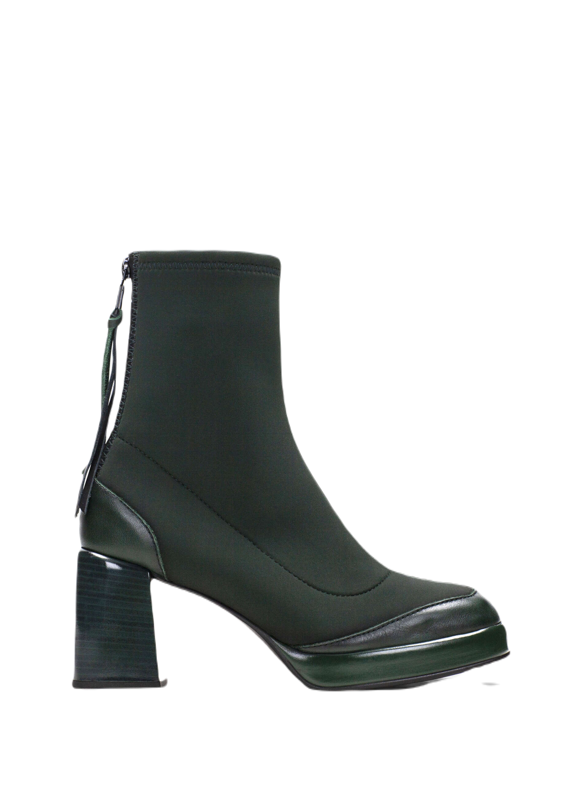 Botki za kostkę na obcasie słupkowym o wysokości 7 cm i okrągłym nosku. Zapinane na zamek na podbiciu z nazwą marki. But ten wykorzystuje technologię TRIFLOW, amortyzuje każdy krok, zapewniając elastyczność i komfort bieżnika, dzięki potrójnej amortyzacji.