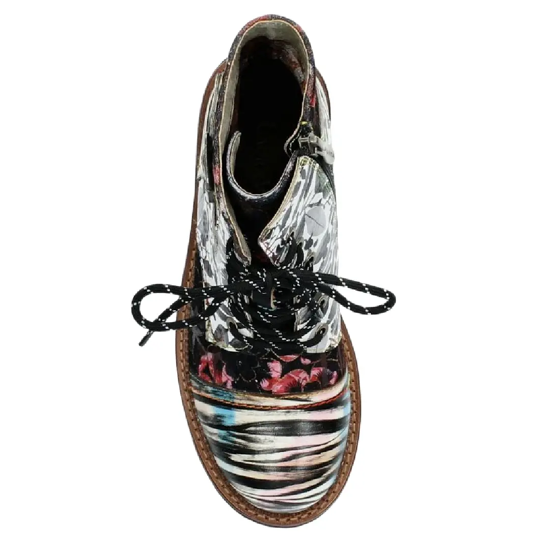 Odkryj niepowtarzalne botki damskie Laura Vita Kleo 15 Noir, które łączą artystyczny design z najwyższą jakością wykonania. Kolorowe botki z kwiatowymi wzorami to idealny wybór dla kobiet, które lubią wyróżniać się stylem i cenią komfort w eleganckim wydaniu.