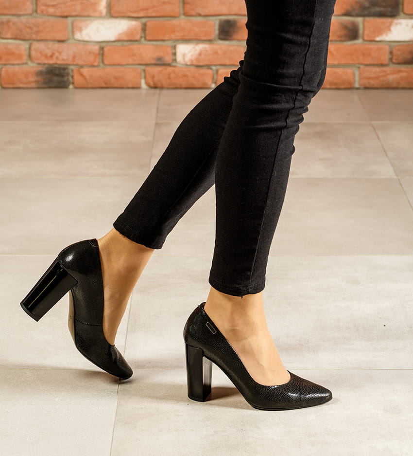 Damskie czółenka w całości wykonane ze skóry naturalnej.Oryginalny szeroki masywny obcas.Pasujące do wielu stylizacji.Produkt polski wysoka jakość wykonania to gwarancja firmy HIGO.