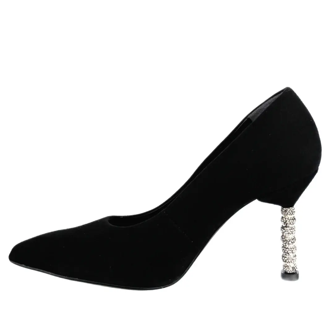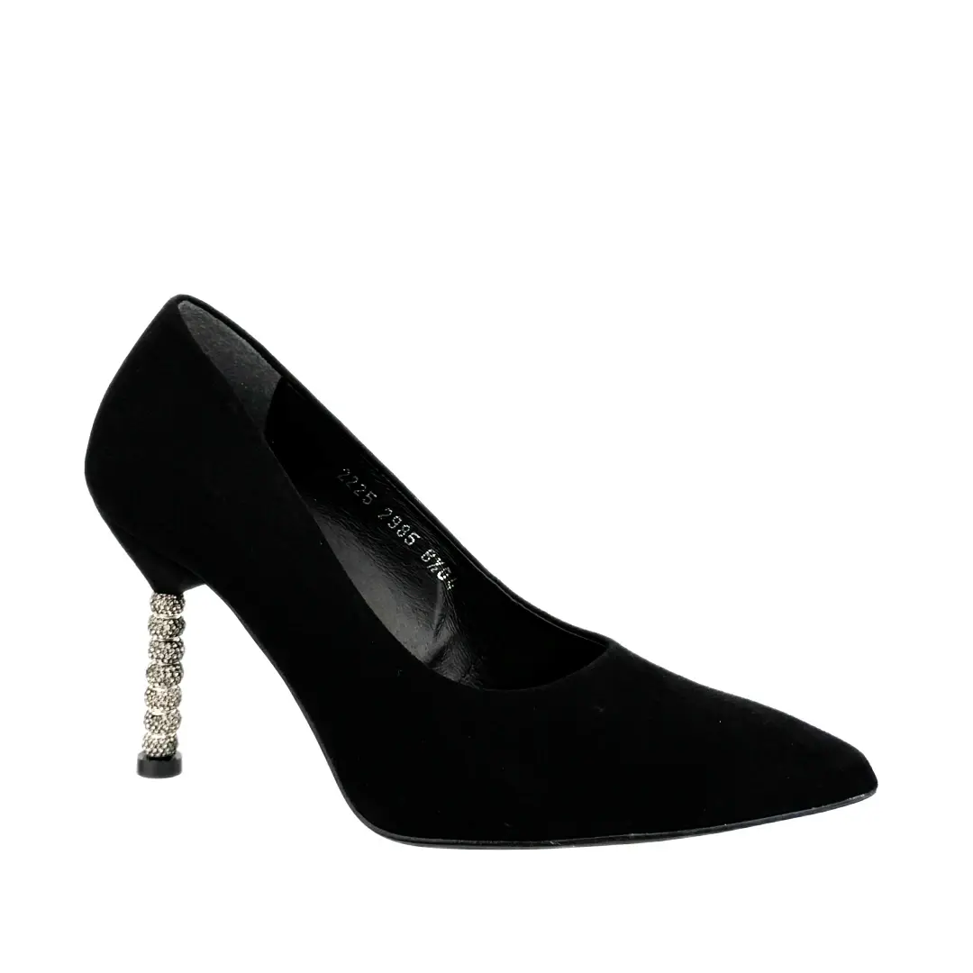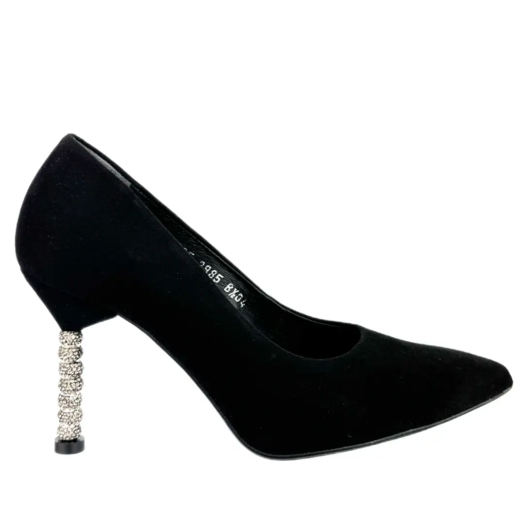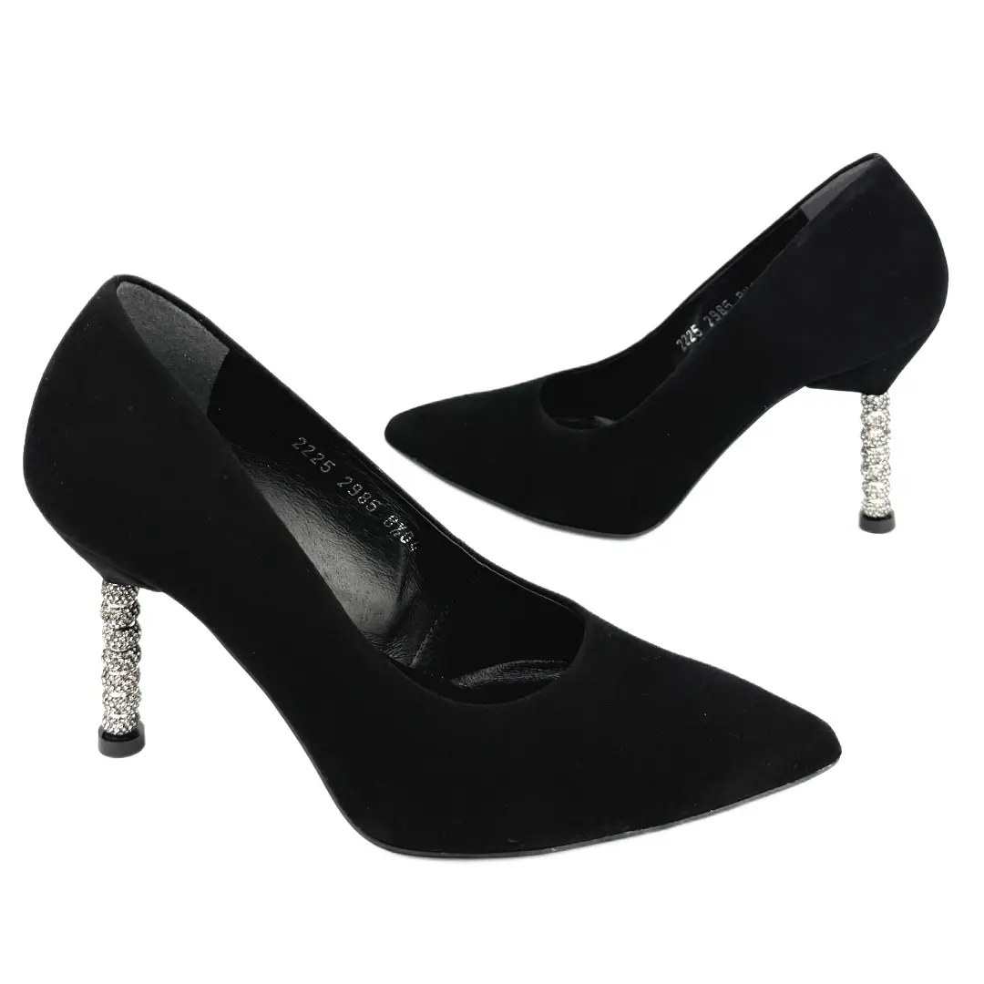 Czółenka damskie Higo 2985 CZAR364 – elegancja w klasycznej czerni z biżuteryjnym akcentem