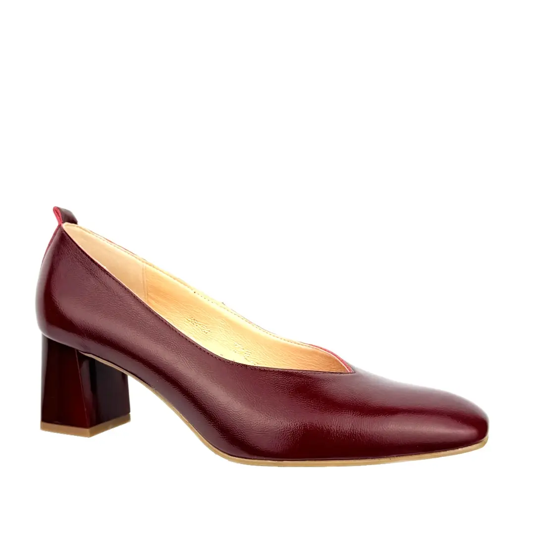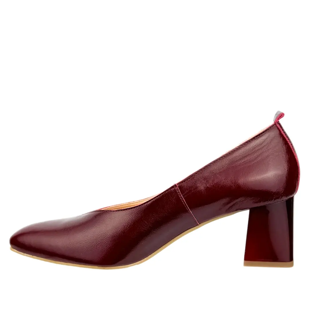 Eleganckie czółenka marki Sala to połączenie klasyki, wygody i najwyższej jakości wykonania. Model został wykonany z lakierowanej skóry naturalnej, która pięknie połyskuje w odcieniu głębokiego bordo, nadając obuwiu wyrafinowanego charakteru.