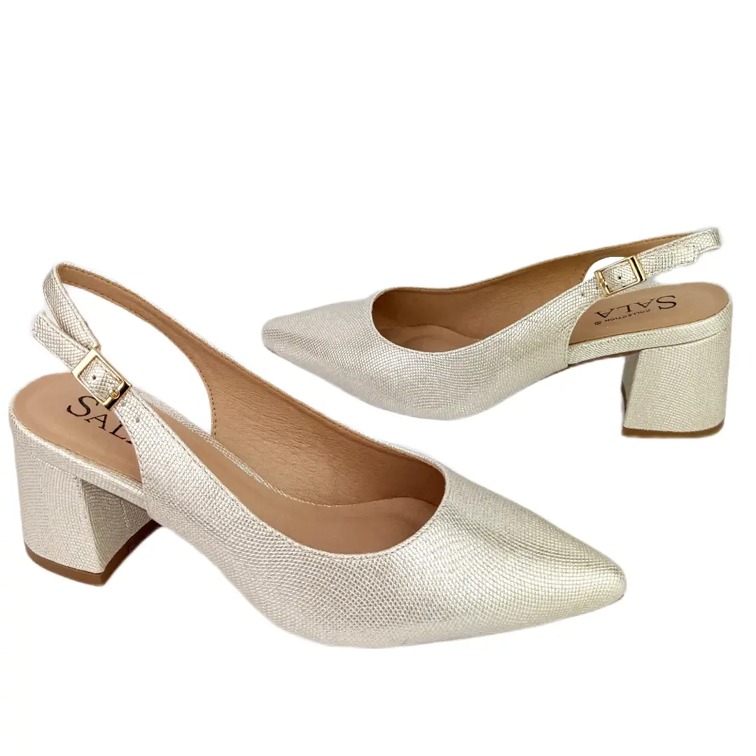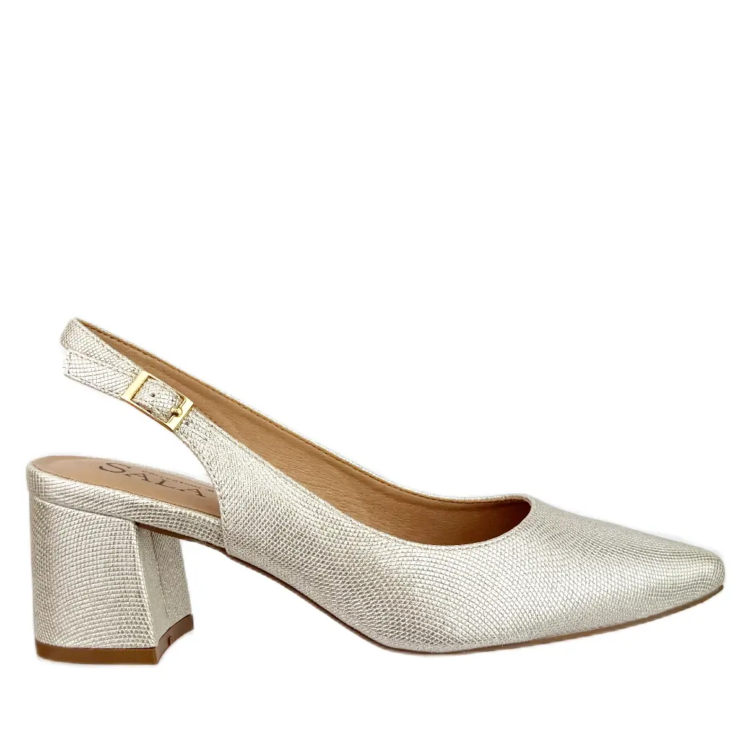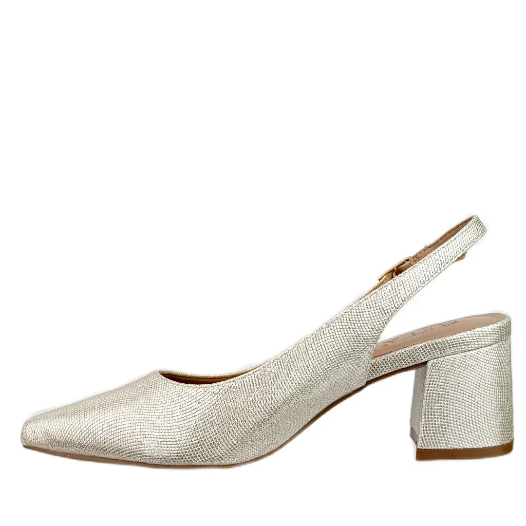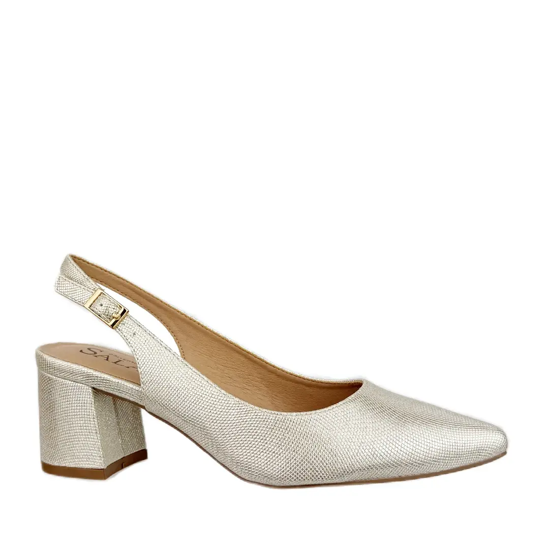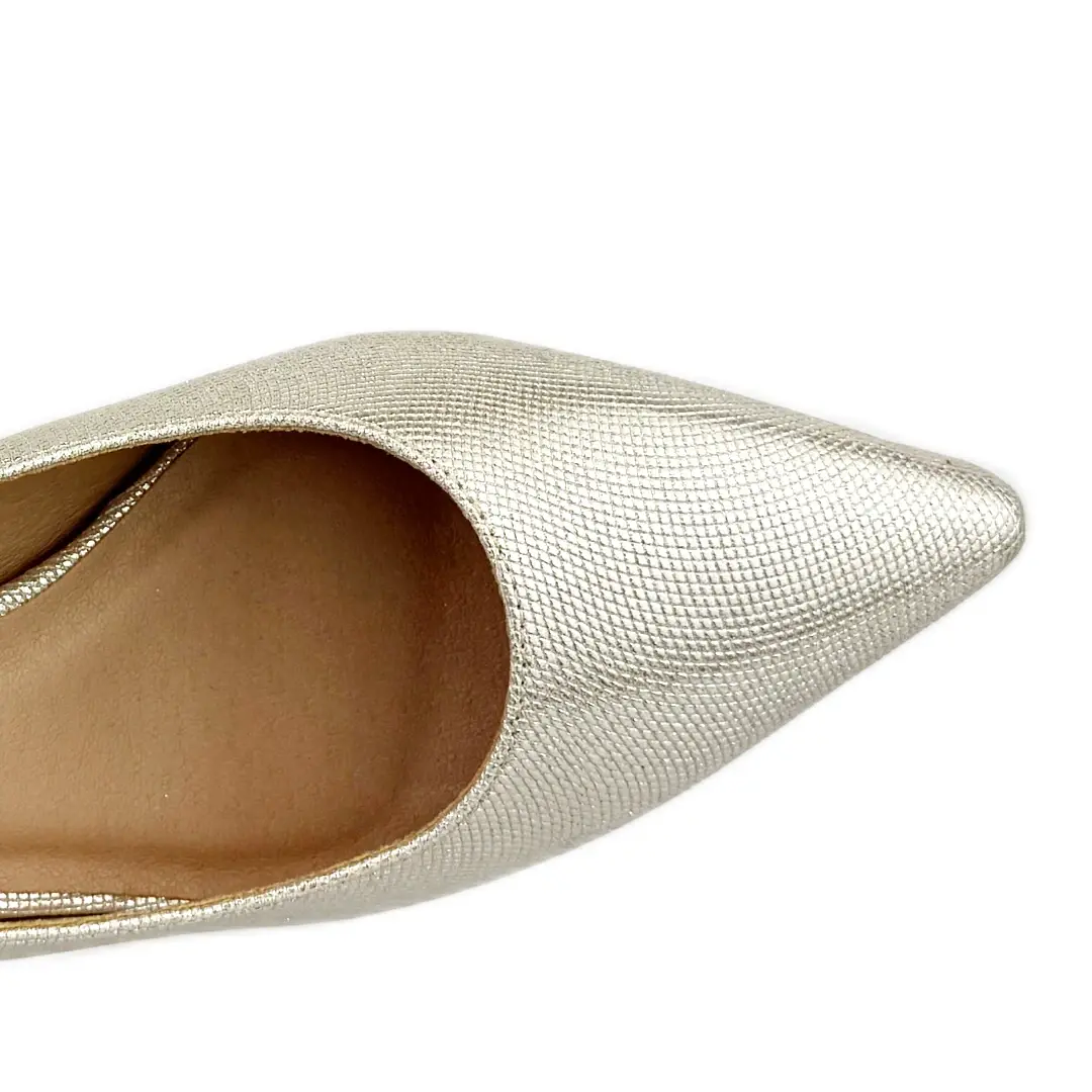 Eleganckie czółenka damskie w wyjątkowym kolorze złotym, które dodadzą blasku każdej stylizacji. Wykonane z wysokiej jakości tworzywa syntetycznego, zapewniają komfort noszenia oraz trwałość na długi czas.