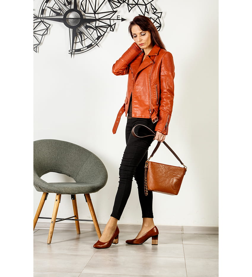 Czółenko damskie HIGO skóra 1989 brąz/Koniak