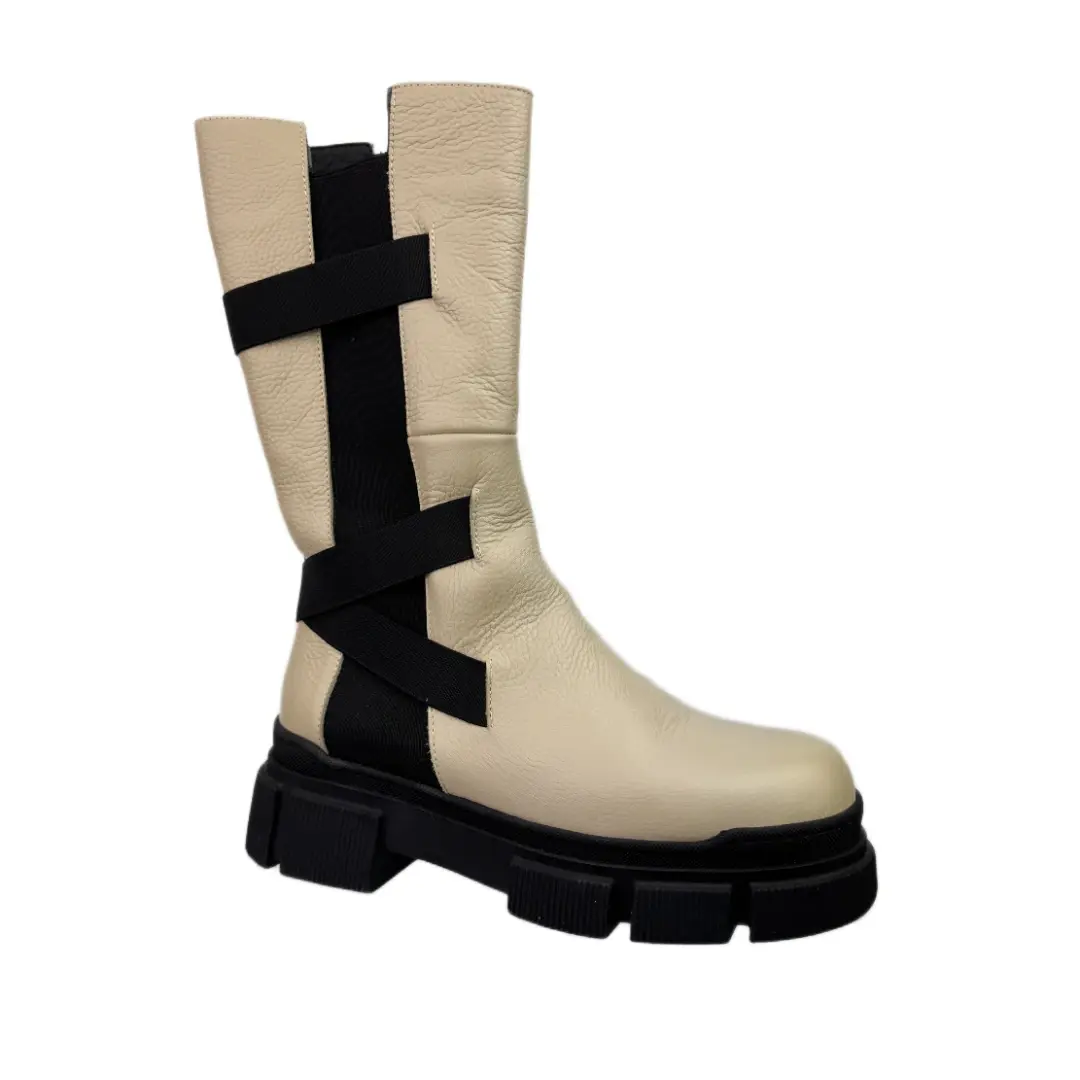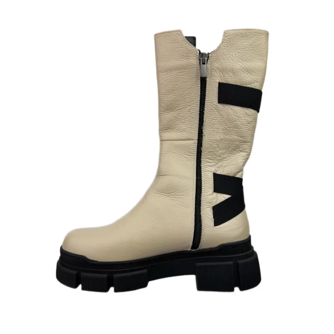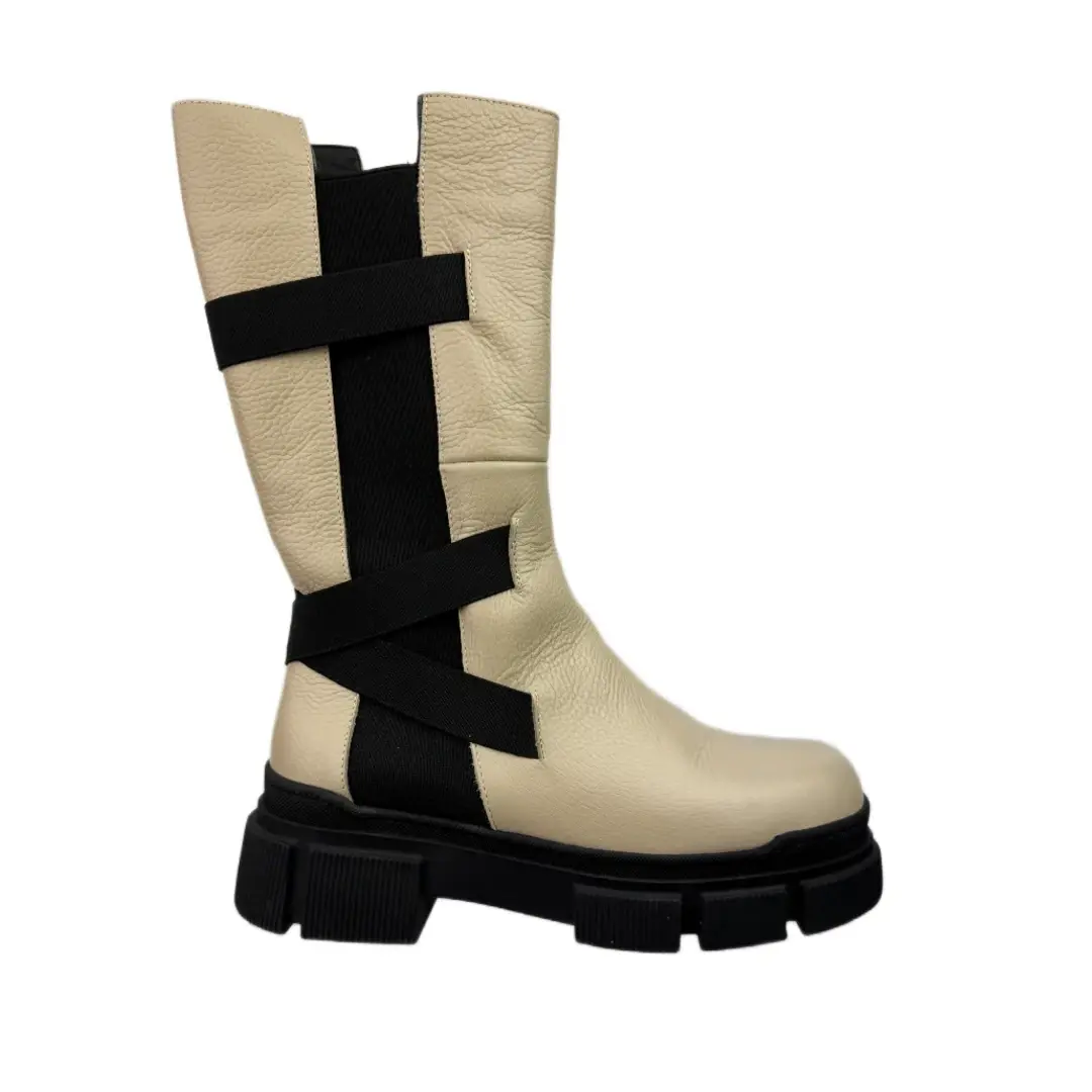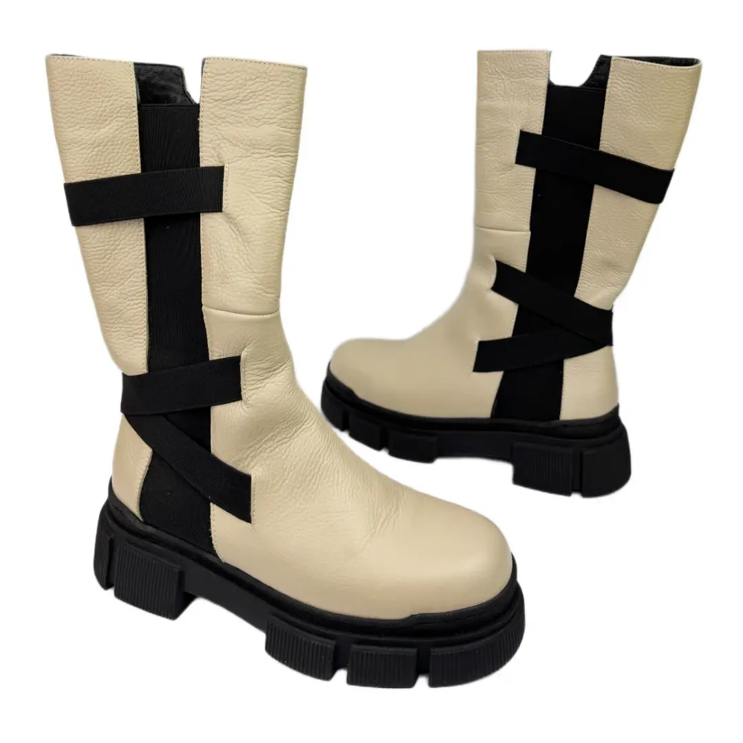 Dodaj swojej garderobie elegancji i wygody dzięki kozakom damskim Boccato 613.21105.44 w kolorze beżowym z czarnymi elementami. Wykonane z naturalnej skóry licowej, zapewniają trwałość, stylowy wygląd i komfort noszenia przez cały sezon jesienno-zimowy.