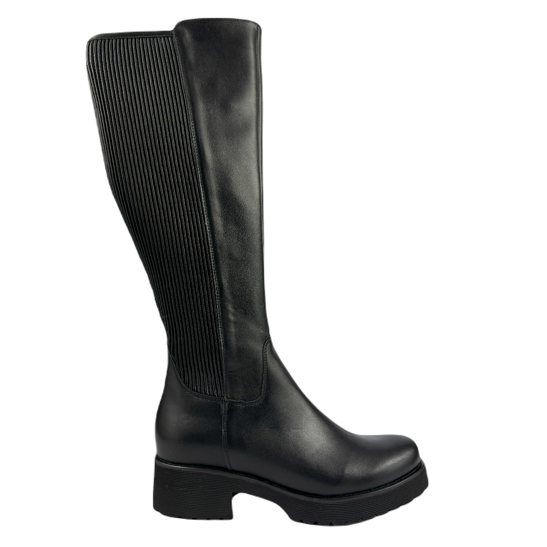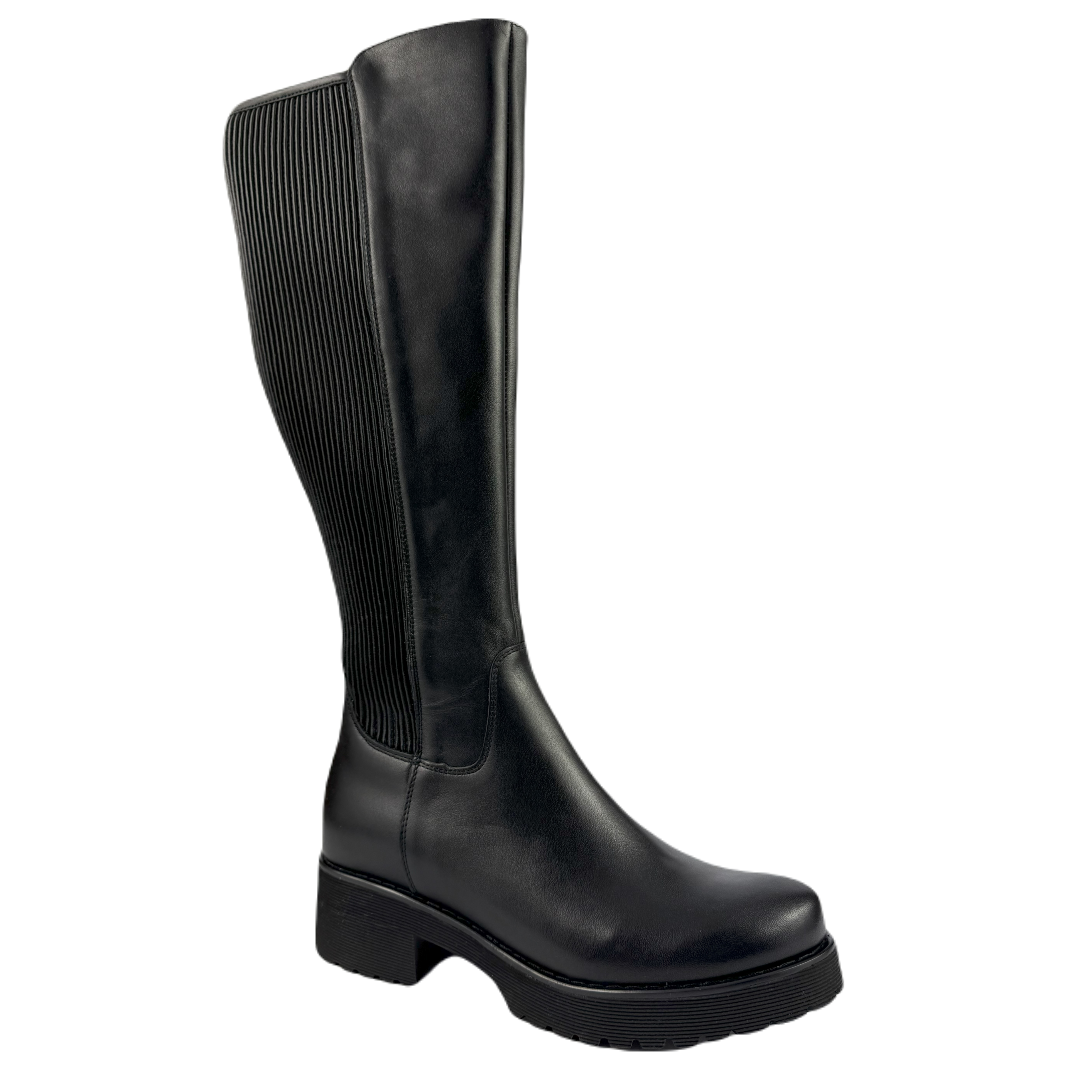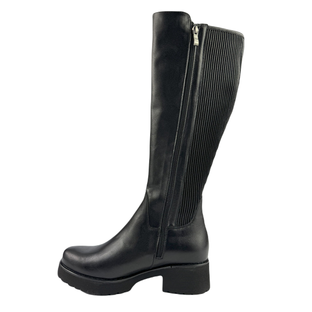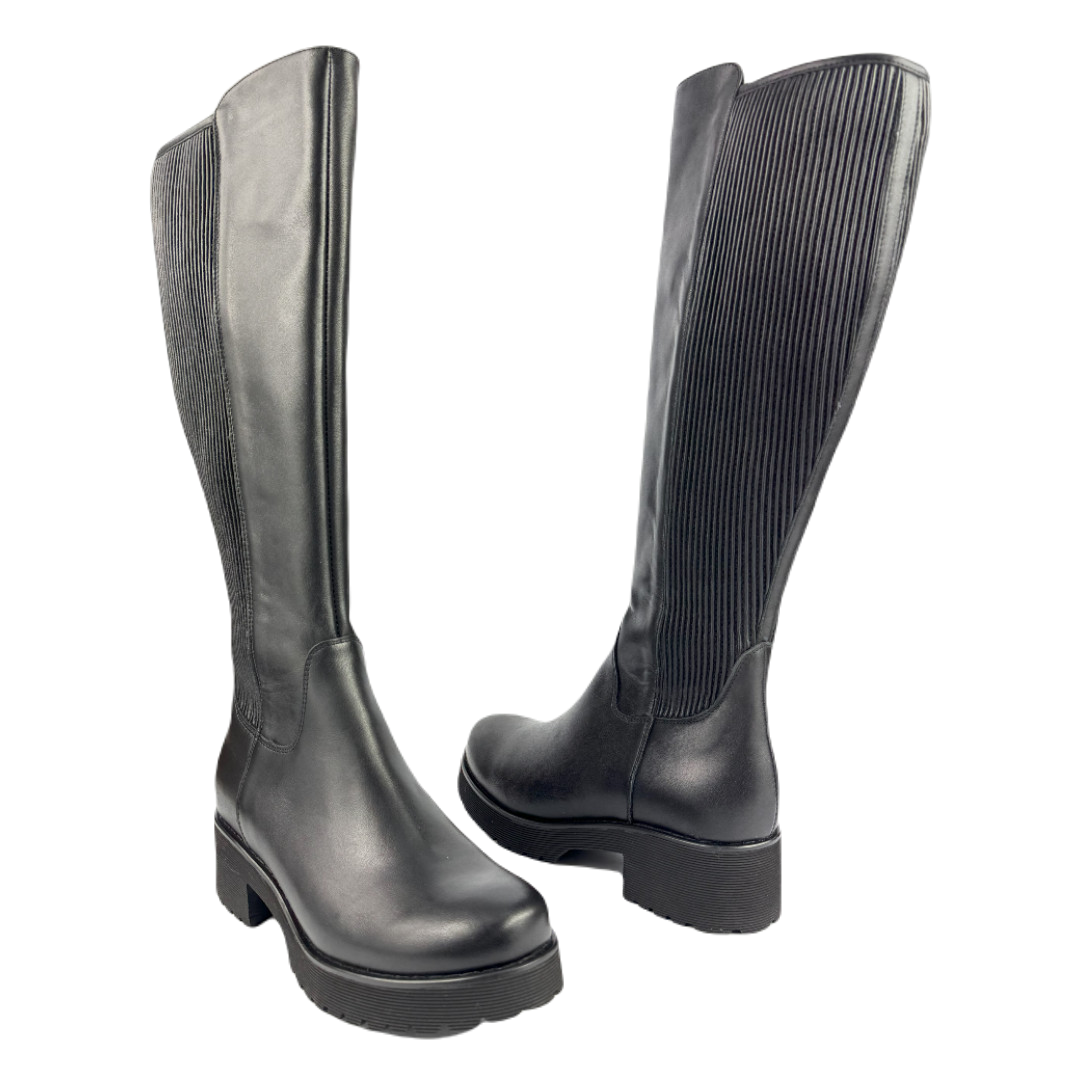 Zapraszamy do zakupu czarnych klasycznych kozaków na podeszwie typu "traktor", które są wykonane z wysokiej jakości naturalnej skóry licowej połączonej ze streczem. Te wytrzymałe i stylowe kozaki będą idealnym uzupełnieniem Twojej jesiennej lub zimowej garderoby.