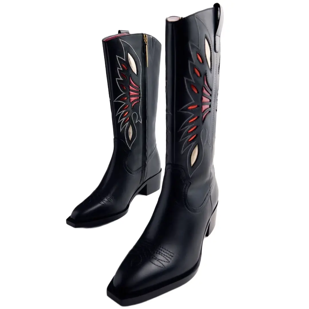 Postaw na modny wygląd i wygodę z kozakami damskimi Gioseppo 76094-P black. To stylowe skórzane buty w klimacie kowbojskim, które wyróżniają się haftowanymi zdobieniami oraz metalowymi akcentami, nadając całości wyjątkowego charakteru.