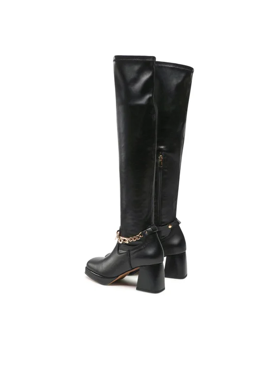 Niezwykle wygodne kozaki damskie Karino, wykonane z najmodniejszej skóry w kolorze czarnym . Świetnie dopasują się do kształtu nogi, zapewniając tym samym maksymalną wygodę chodzenia. Górna część cholewki powstała z czarnej  lycry, która prezentuje się bardzo elegancko. Dół cholewki wykonany jest z skóry naturalnej . Ozdoba jest odpinana .