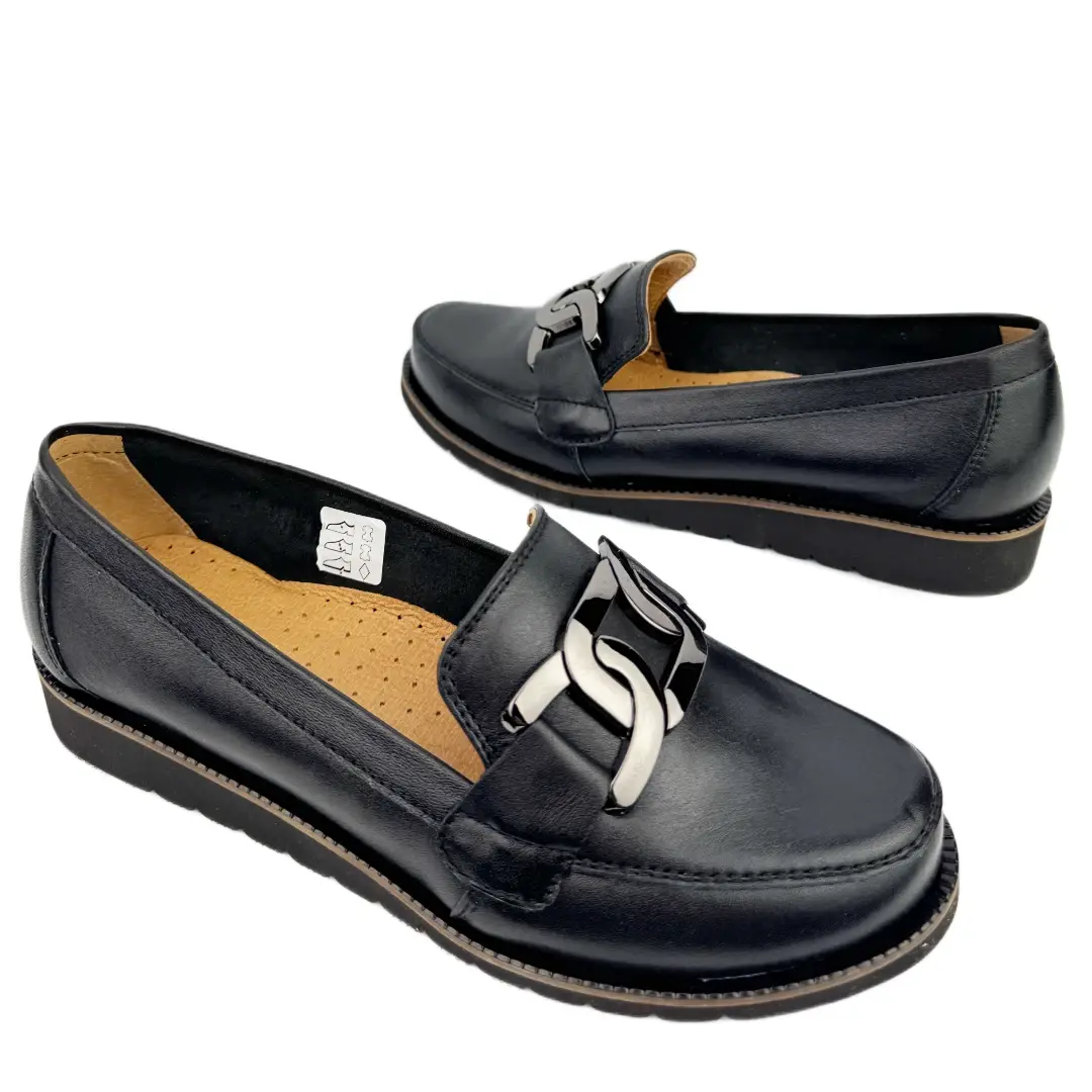 Mokasyny damskie Higo 2224 w klasycznym czarnym kolorze to ponadczasowa propozycja dla kobiet, które cenią elegancję, wygodę oraz wysoką jakość wykonania. Model został wykonany z naturalnej skóry licowej, która wyróżnia się trwałością, odpornością na codzienne użytkowanie oraz stylowym, minimalistycznym wyglądem.