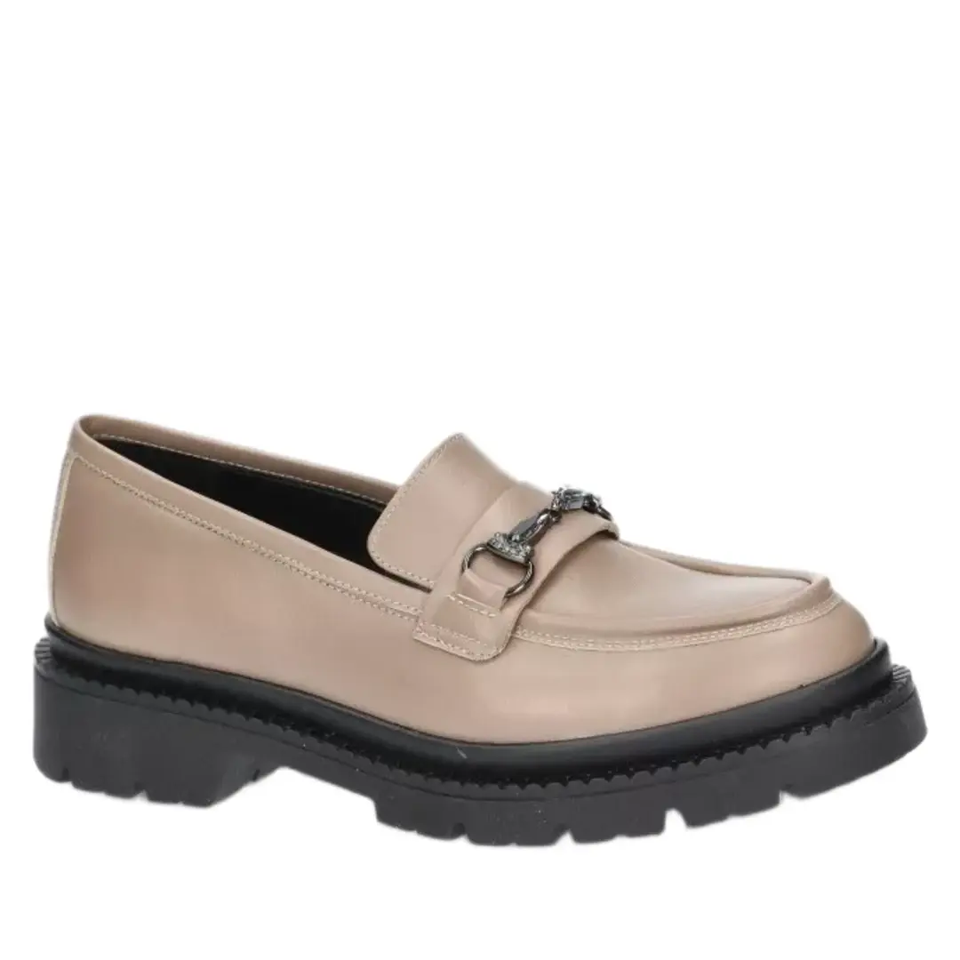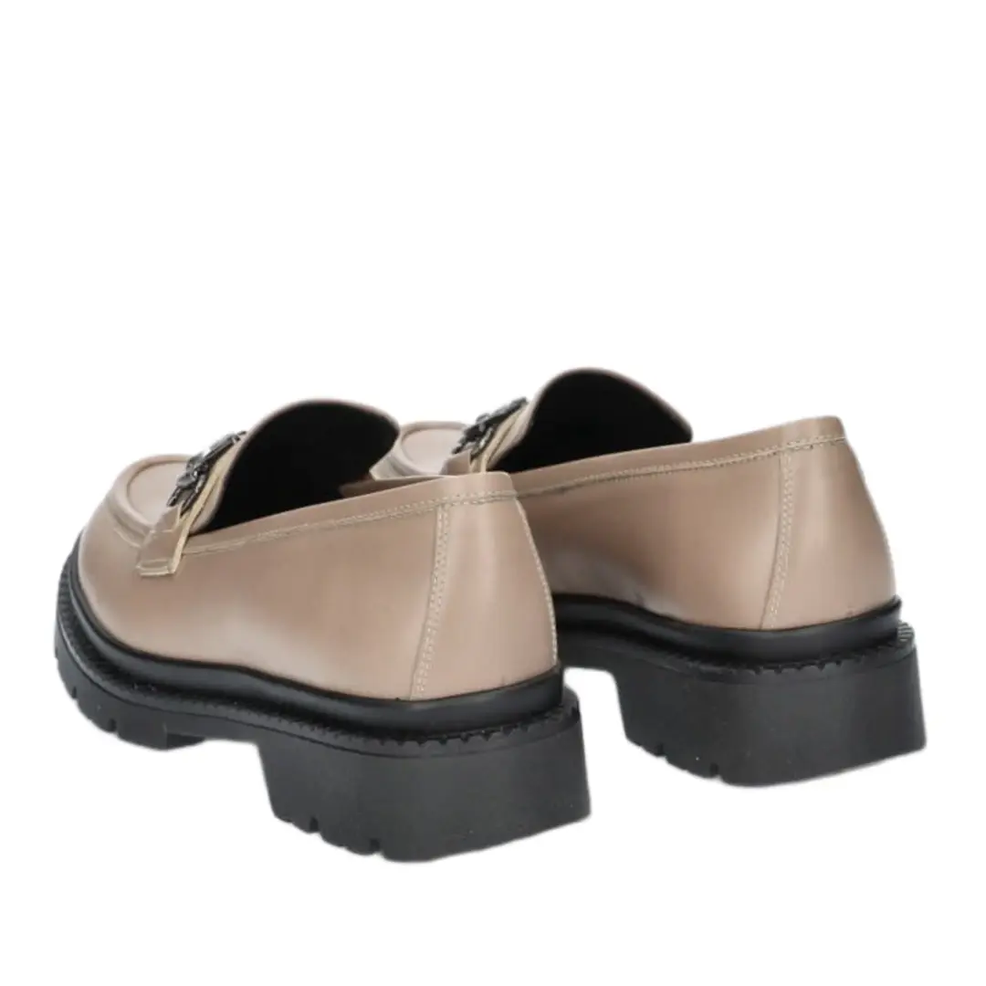 Klasyczne mokasyny w kolorze beżowym to propozycja idealnie wpasowująca się w aktualnie panujące trendy. Wykonane z najlepszej jakości skóry licowej. Prosta linia cholewki podkreślona została modną ozdobą. Stabilna podeszwa zapewnia komfort użytkowania i pełną stabilizację stopy. Wsuwane mokasyny to idealna propozycja nie tylko na co dzień.