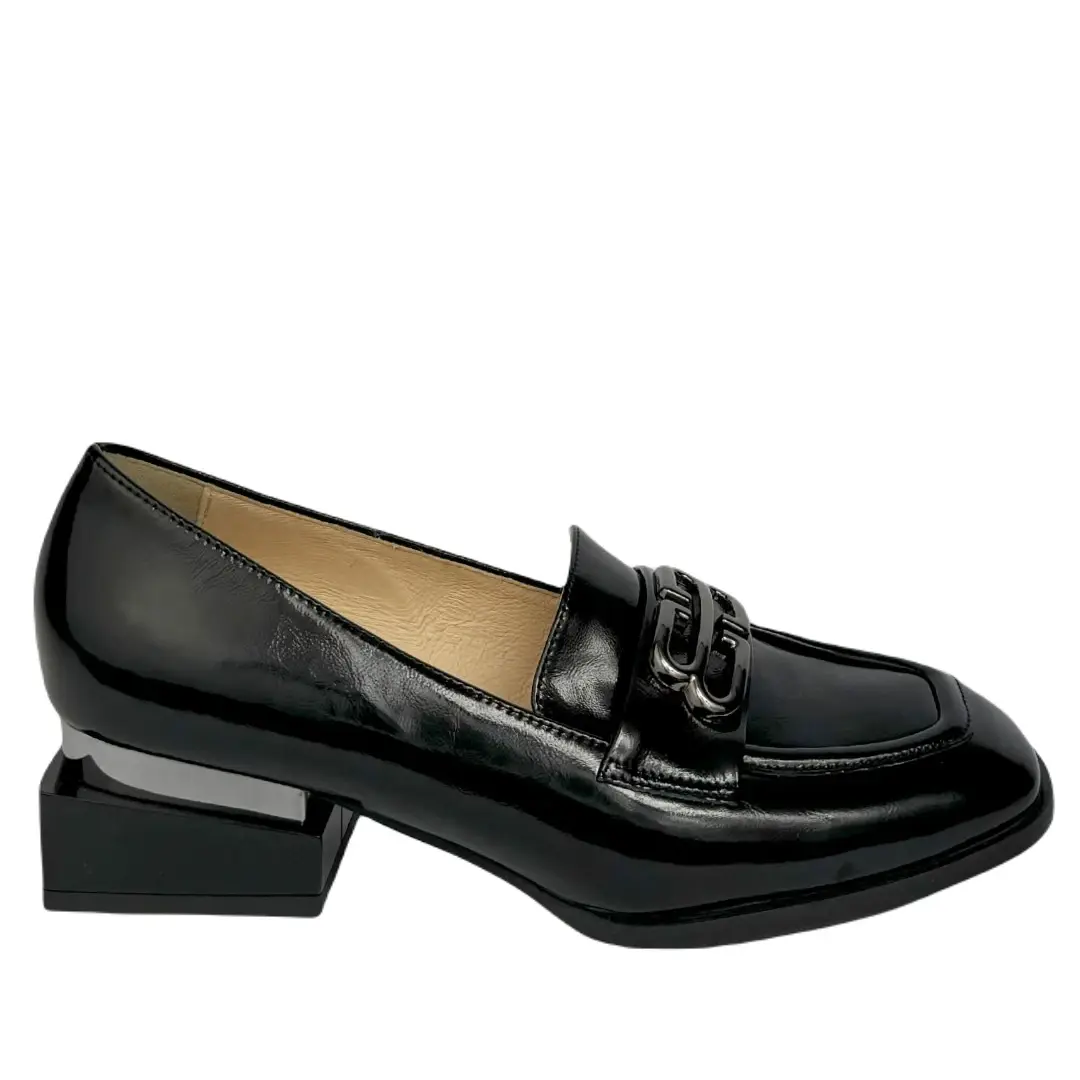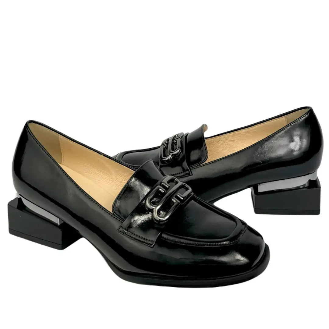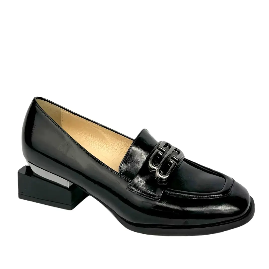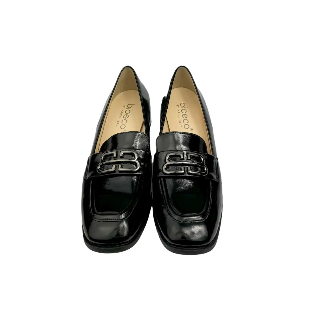 Eleganckie i wygodne półbuty damskie Arka Bioeco 06628/1974/1290 w kolorze czarnym to doskonała propozycja dla kobiet ceniących klasykę w nowoczesnym wydaniu. Model wyróżnia się minimalistycznym designem, stabilnym obcasem oraz subtelnym srebrnym elementem dekoracyjnym, który nadaje całości wyjątkowego charakteru.