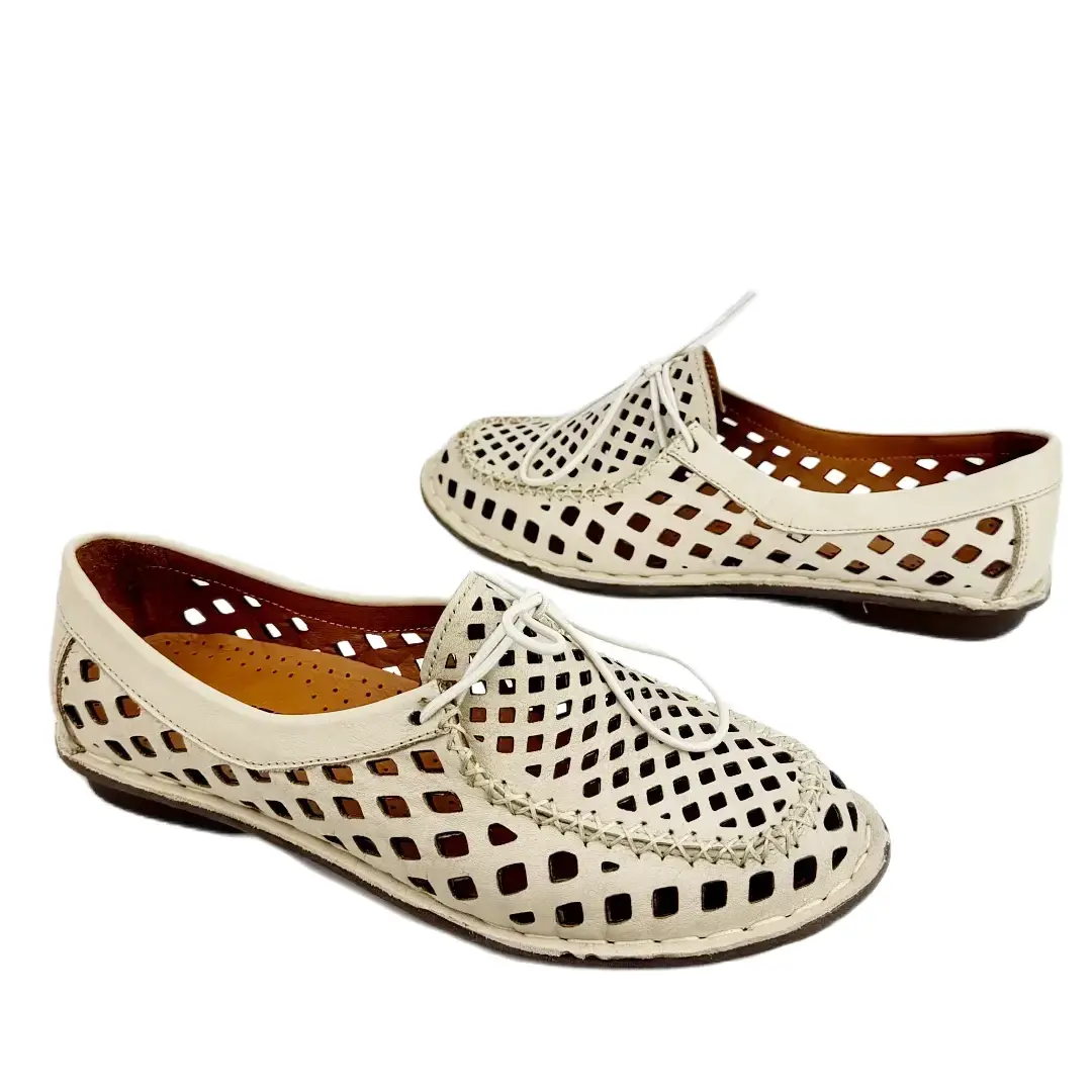 Półbuty damskie ażurowe skórzane Artiker 58C3500 beżowe