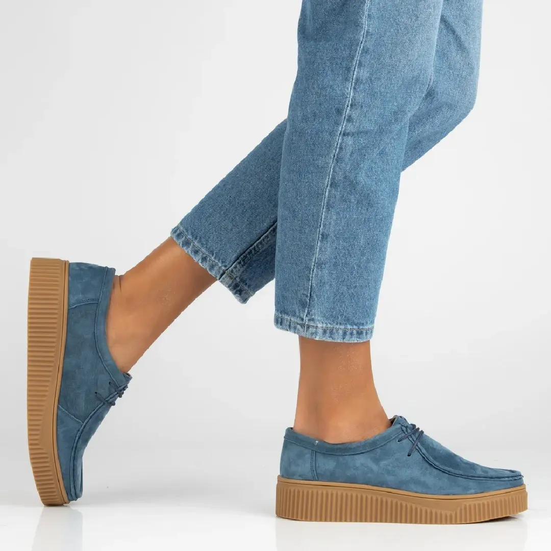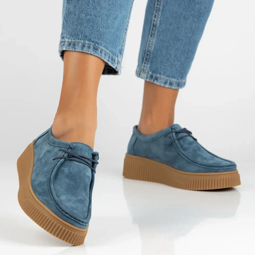 Granatowe półbuty damskie na platformie świetnie sprawdzą się jako obuwie codzienne – do pracy, na spacer, zakupy czy spotkania w mieście.