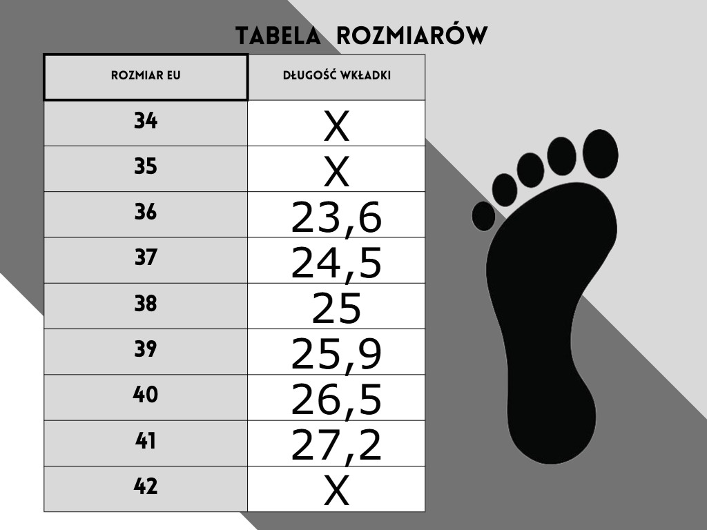 Buty zostały osadzone na stabilnej platformie o wysokości 3 cm z dodatkowym podwyższeniem 1,5 cm, co zapewnia lepszą amortyzację oraz wygodę podczas chodzenia. Okrągły nosek daje swobodę palcom, a tęgość G sprawia, że model dobrze dopasowuje się do standardowej szerokości stopy. Niska cholewka (5,5 cm) podkreśla lekkość i uniwersalny charakter obuwia.