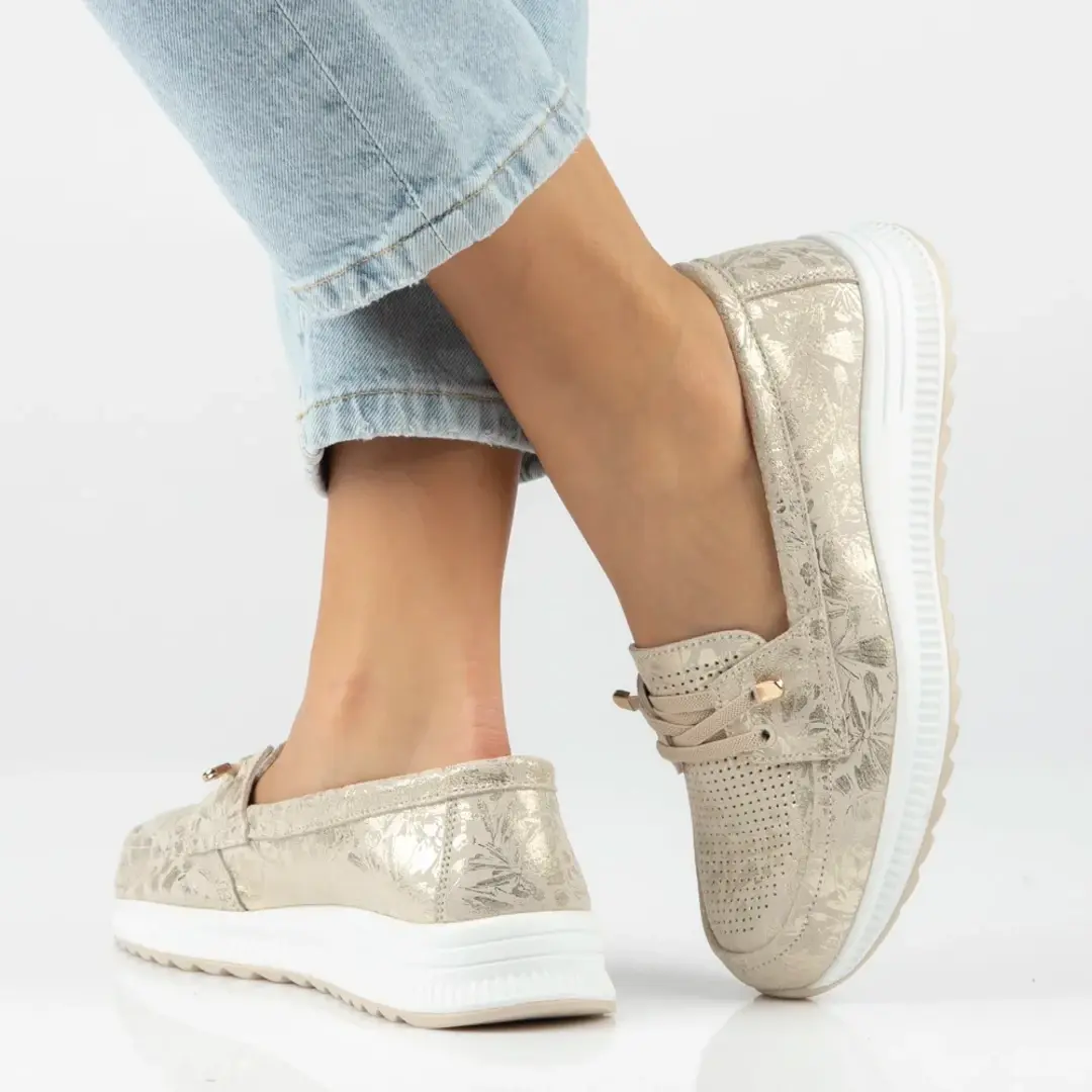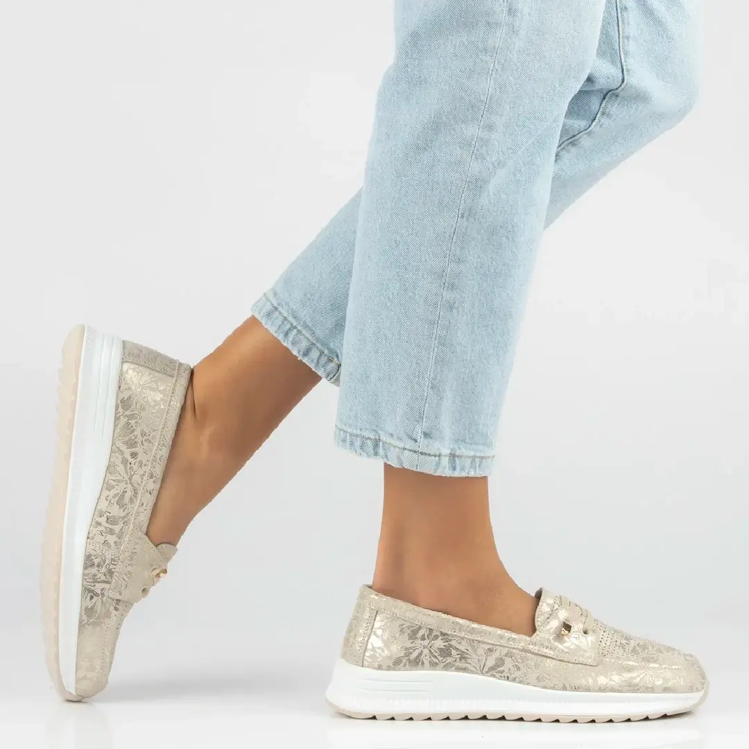 Półbuty damskie Filippo DP7651/26 w efektownym złotym kolorze to idealna propozycja dla kobiet, które cenią wygodę oraz modny, wyróżniający się styl. Ten model doskonale sprawdzi się w codziennych stylizacjach, dodając im elegancji i nowoczesnego charakteru.