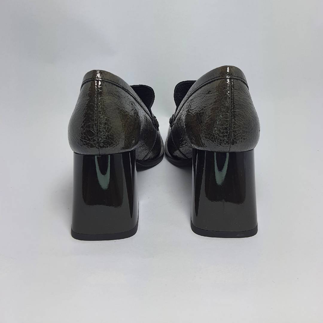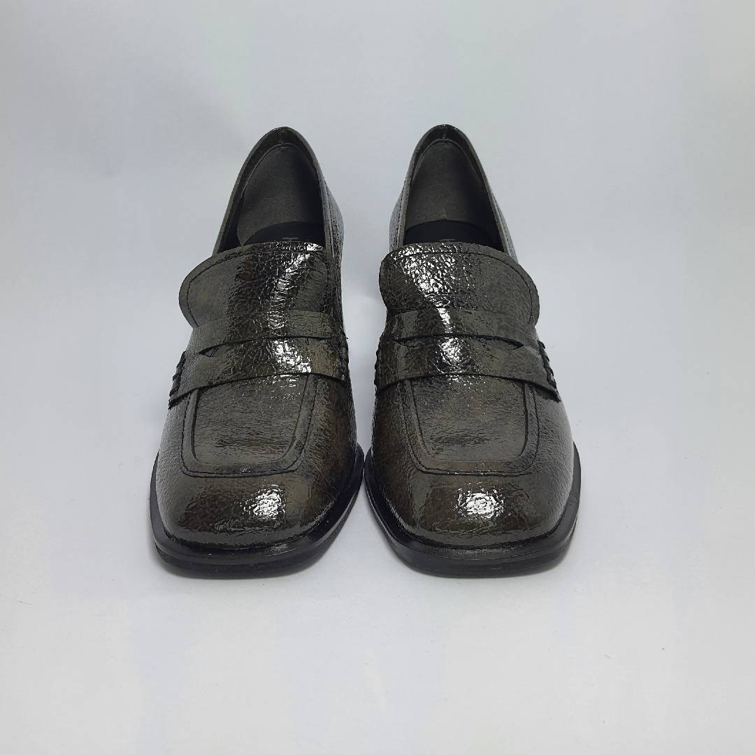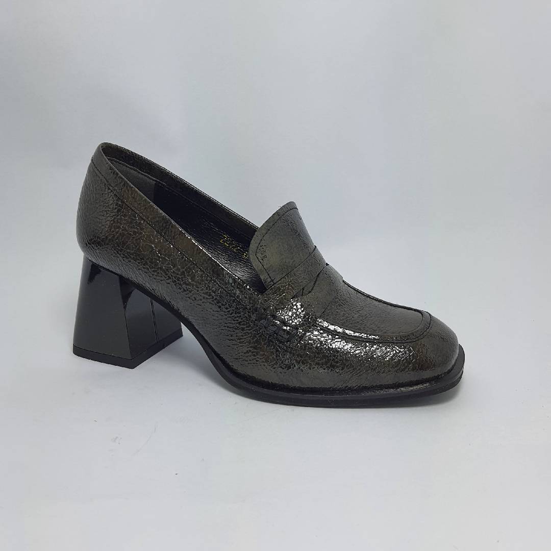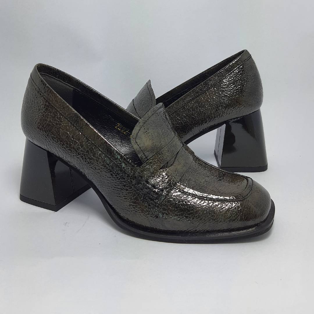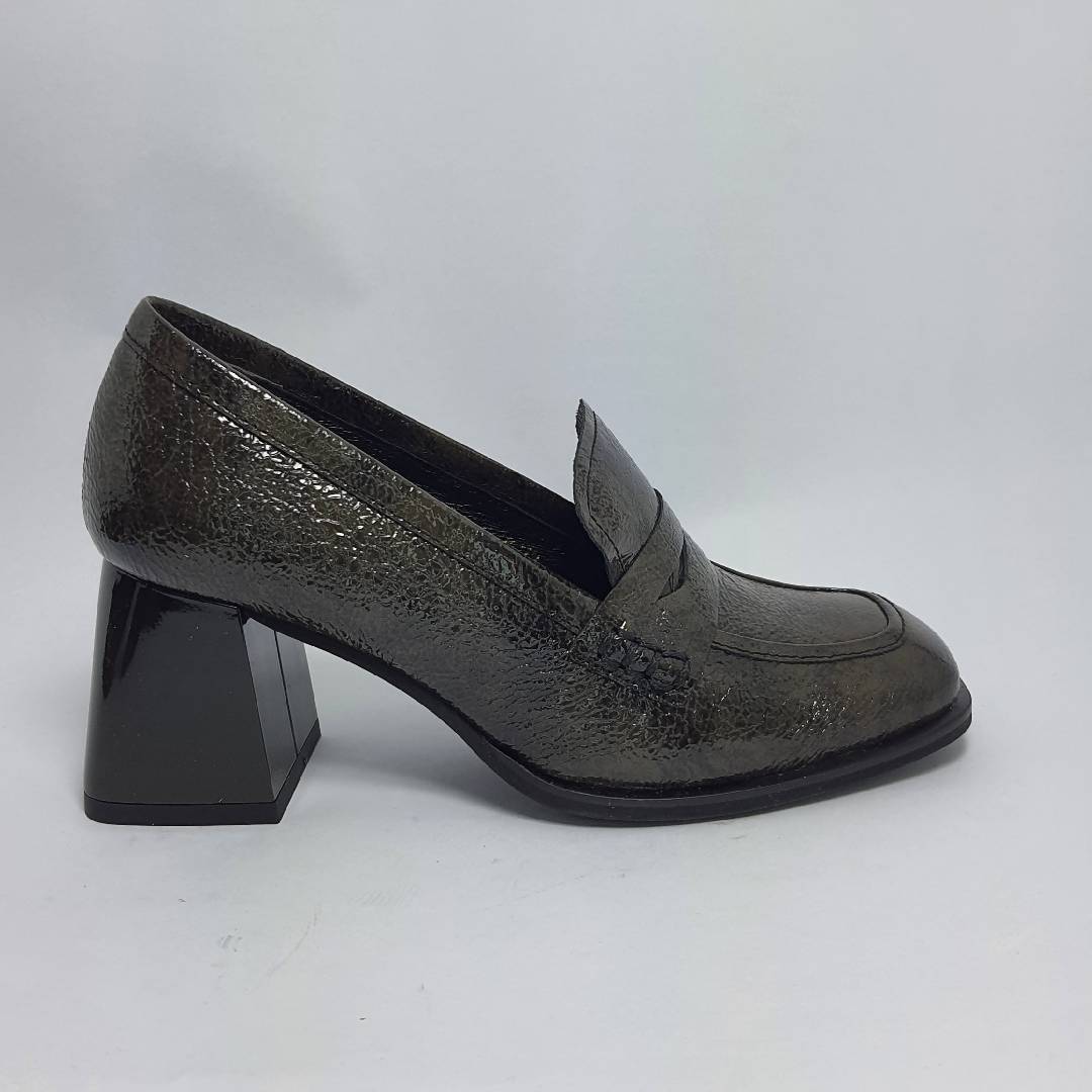 Piękny półbuty/mokasyny ze skóry naturalnej  lakierowanej. Szeroki klockowy obcas do tego gruba masywna platforma w przodzie to hit tego roku. Bardzo dobrze wyprofilowane i  wygodne.  Produkt polski wysoka jakość wykonania to gwarancja firmy HIGO . Polecamy