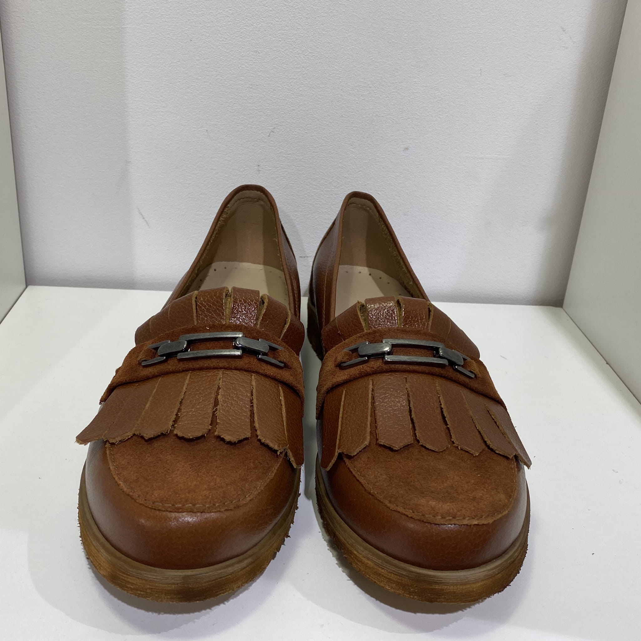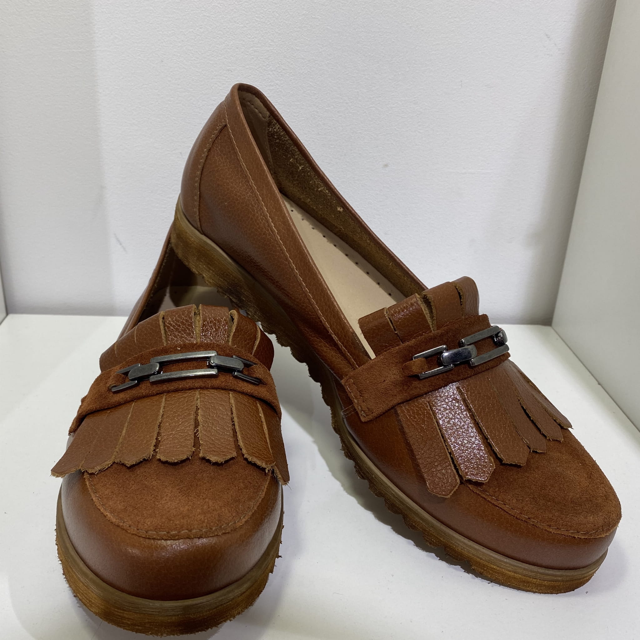 Piękny półbuty/mokasyny ze skóry naturalnej. Cholewka z gustowną ozdobą i delikatnymi frędzlami. Komfortowa bardzo lekka piankowa koturna i bardzo dobre wyprofilowanie. Produkt polski bardzo wysoka jakość wykonania firmy HIGO.