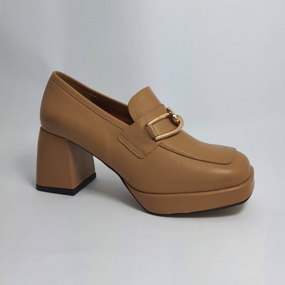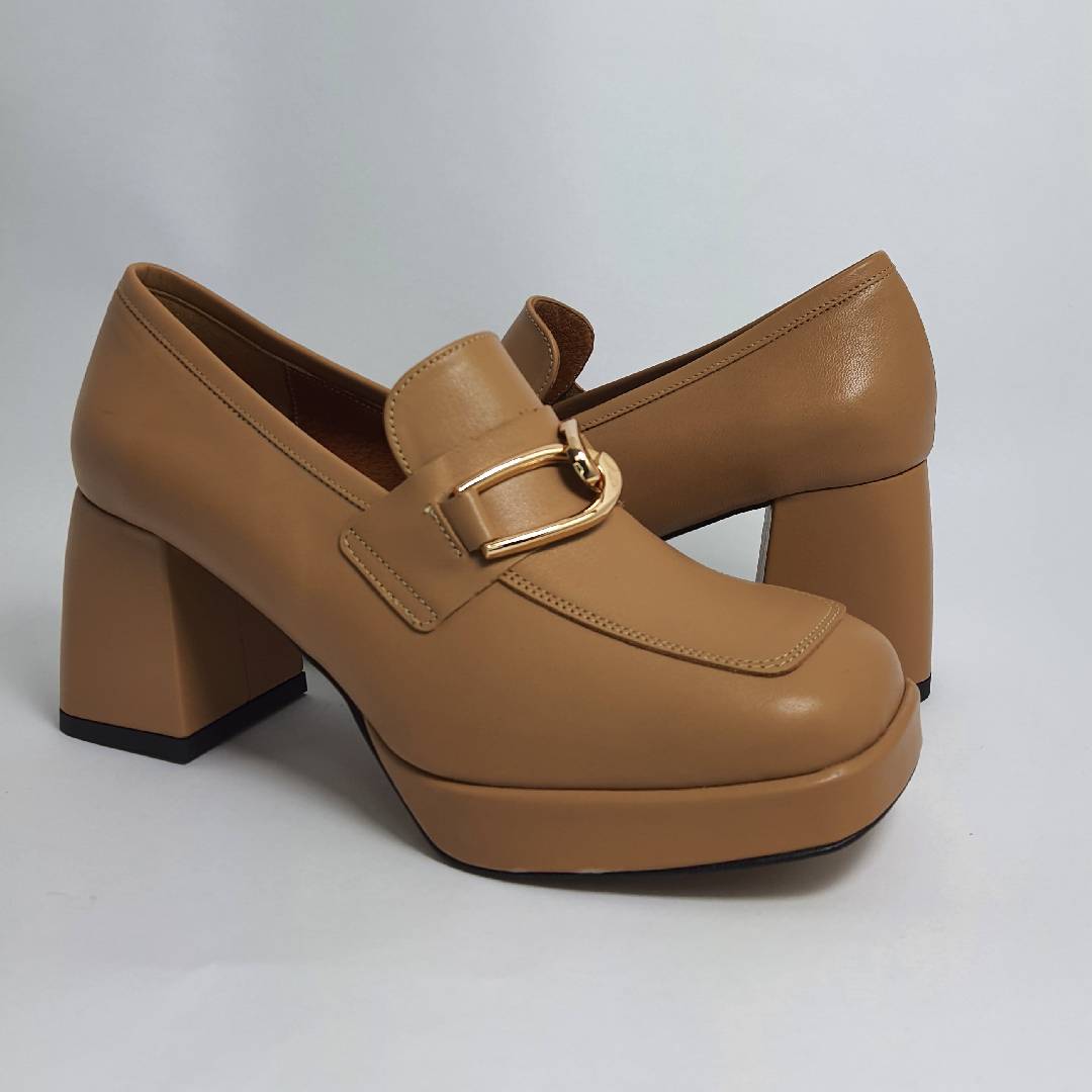 Piękny półbuty/mokasyny ze skóry naturalnej  na koturnie. Ozdoba w kolorze złotym. Szeroki klockowy obcas do tego gruba masywna platforma w przodzie to hit tego roku. Bardzo dobrze wyprofilowane i  wygodne.  Produkt polski wysoka jakość wykonania to gwarancja firmy Karino .