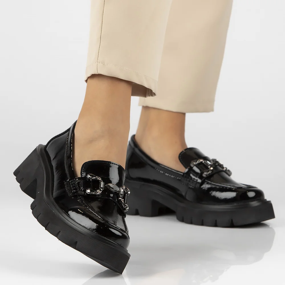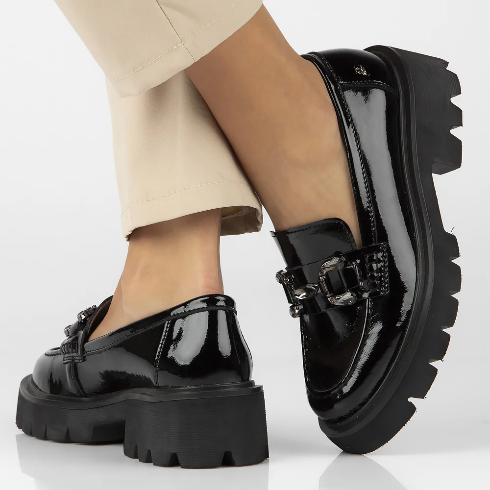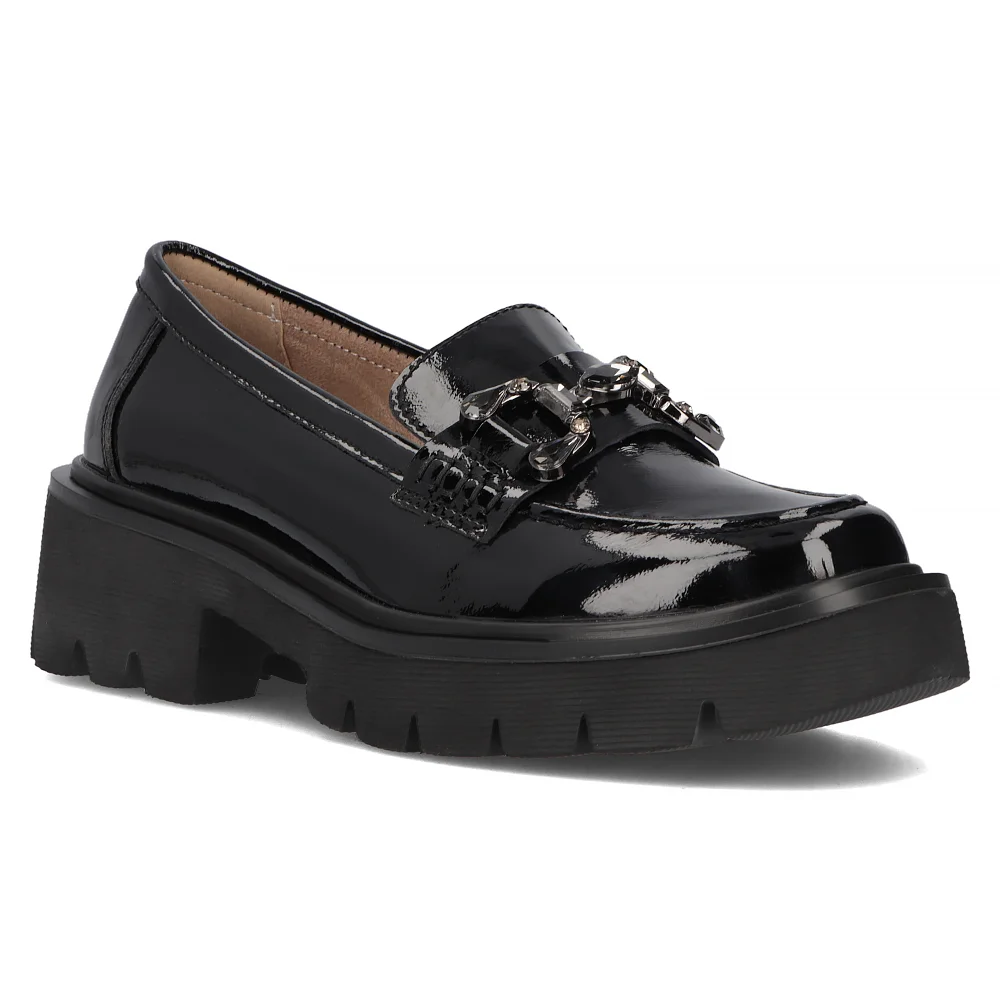 Skórzane półbuty na platformie Filippo DP 6475/24 BK L CZARNY LAKIER