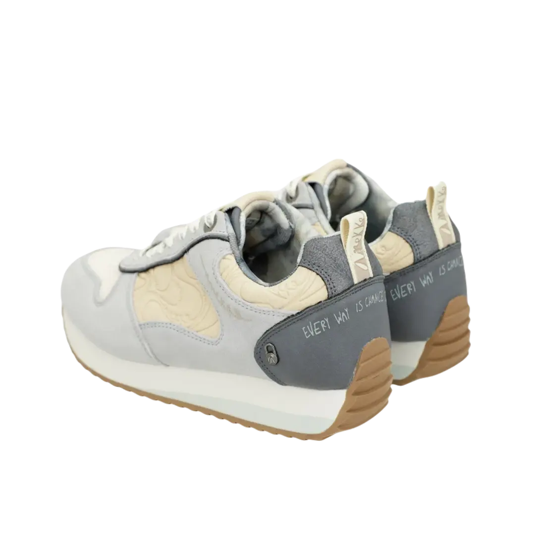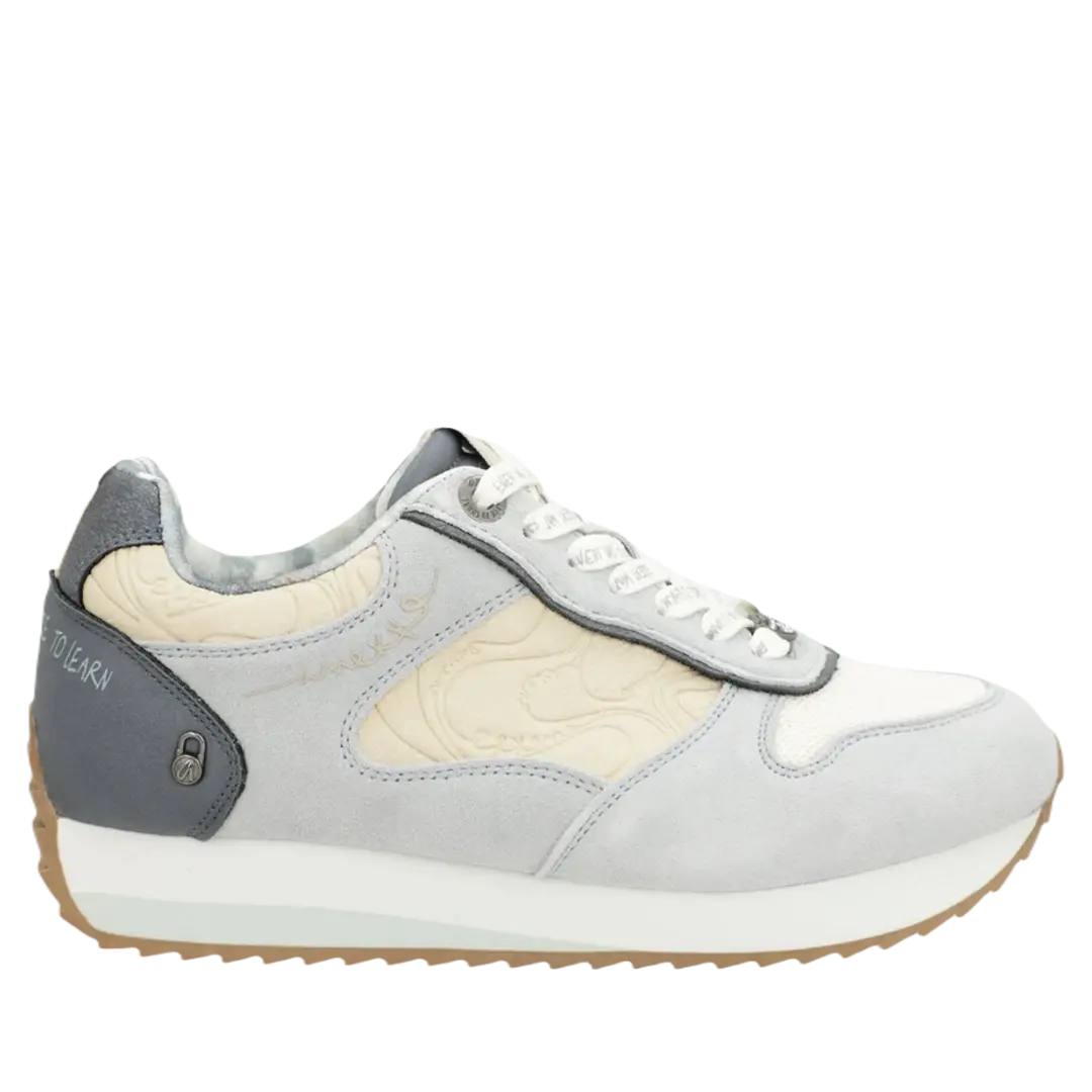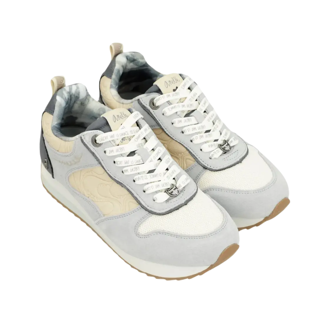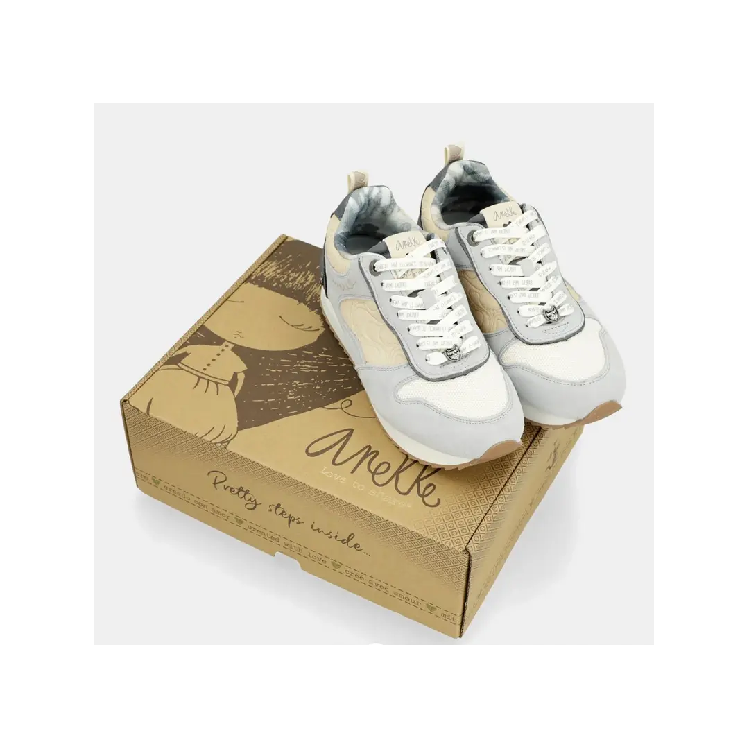 Sneakersy Anekke zachwycają oryginalnym designem, który łączy szarość z dwukolorową, biało-czarną podeszwą. Platformowa podeszwa z ząbkowanym profilem oraz wyściółka w obszarze pięty to gwarancja wygody oraz stabilności, co czyni je doskonałym wyborem na co dzień.