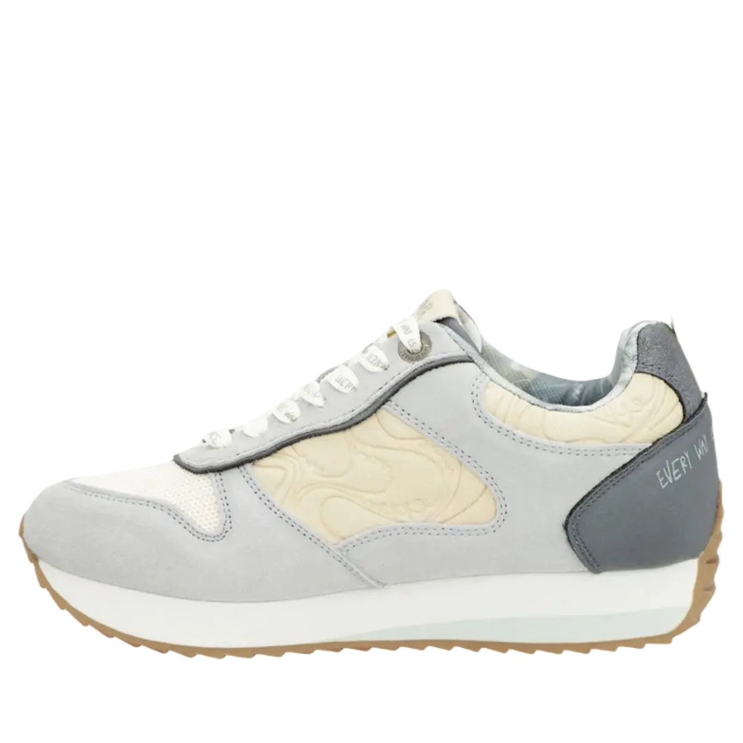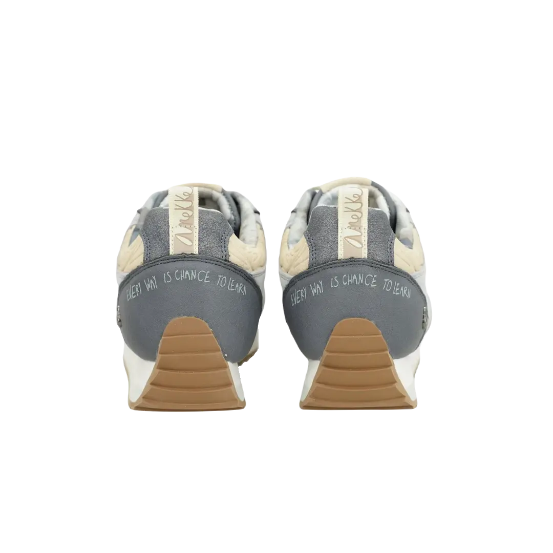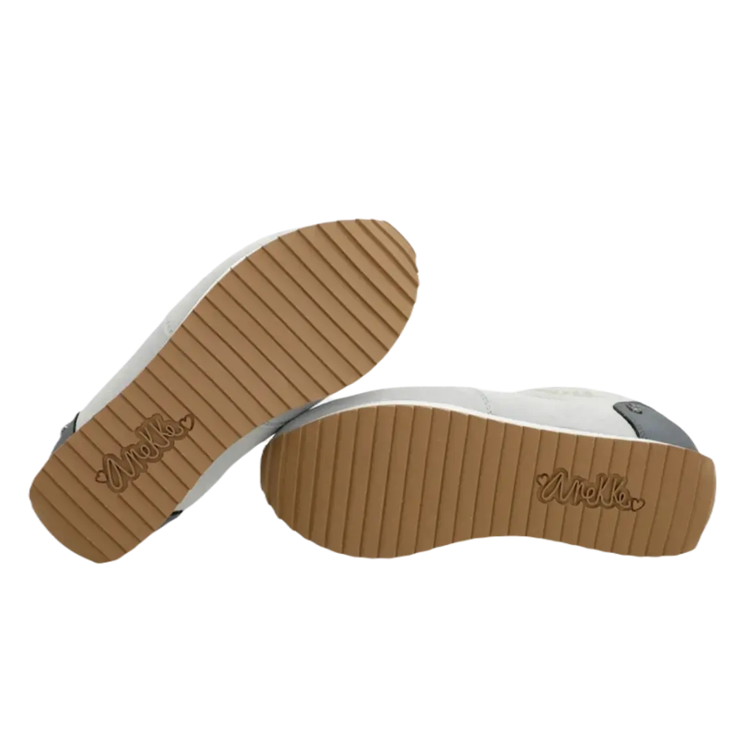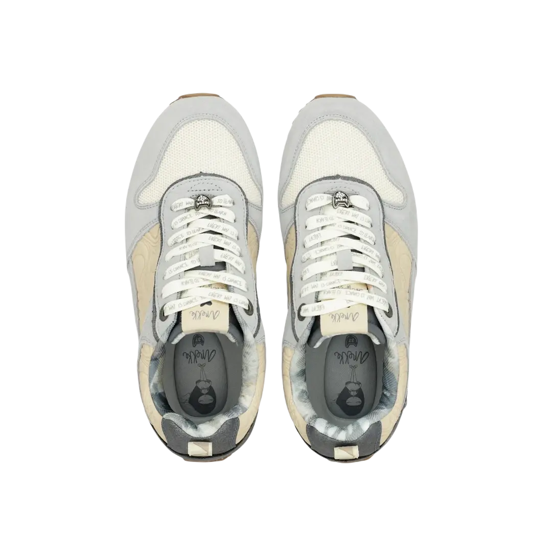 Sneakersy Anekke zachwycają oryginalnym designem, który łączy szarość z dwukolorową, biało-czarną podeszwą. Platformowa podeszwa z ząbkowanym profilem oraz wyściółka w obszarze pięty to gwarancja wygody oraz stabilności, co czyni je doskonałym wyborem na co dzień.