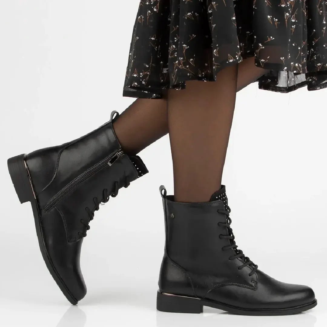 3. Uniwersalny design – klasyczny czarny kolor i okrągły nosek sprawiają, że trzewiki pasują do wielu stylizacji, od casualowych po bardziej eleganckie.
